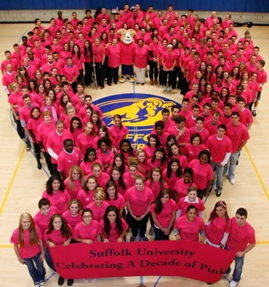 “Our Decade of Pink, with the formation of the human ribbon, is a visible reminder of hope and caring that the University community embraces on behalf of so many,” said Nelson.